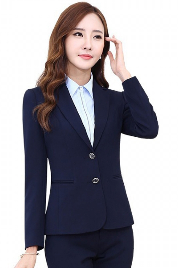 Đồng phục áo vest công sở nữ màu xanh tím than