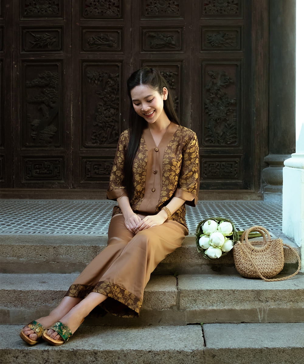 Tên sản phẩm: | Quần áo phật tử nữ màu nâu đậm vân hoa |