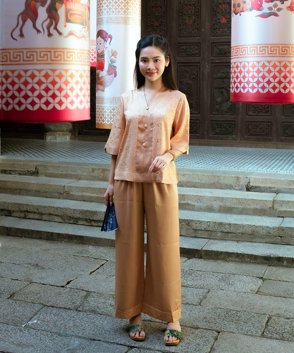 Tên sản phẩm: | Quần áo phật tử nữ màu nâu nhạt vân hoa |
