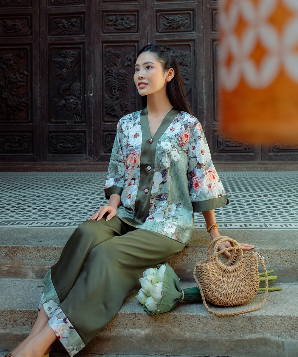 Tên sản phẩm: | Quần áo phật tử nữ màu xanh lá vân hoa |