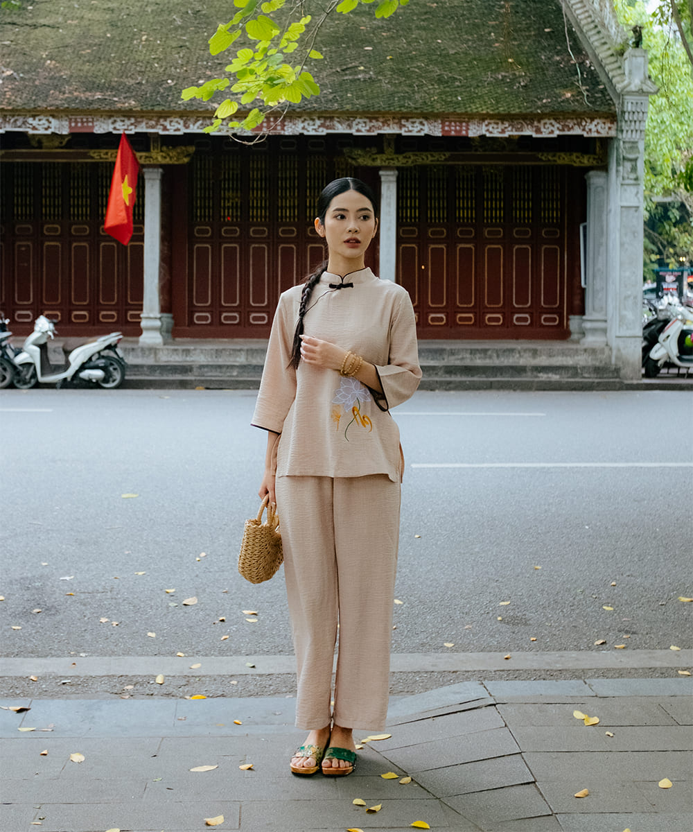 Tên sản phẩm: | Quần áo phật tử nữ thêu hoa sen |